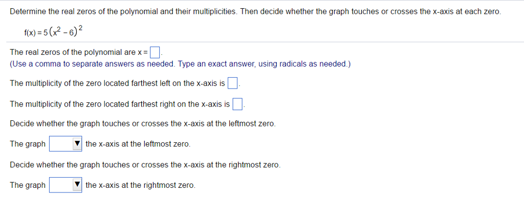 Multiplicity and x intercepts if r is a zero of even multiplicity then the graph from math 141 at san diego mesa college Find x such that f(x)=0. Multiplicity of zeros of polynomials.