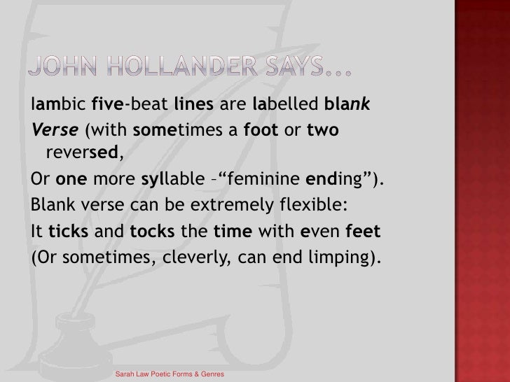 For example, one of the most common measurements is called 'iambic pentametre'. Blank verse definition, unrhymed verse, especially the unrhymed iambic pentameter most frequently used in english dramatic, epic, and reflective verse. What is blank verse and how does shakespeare use it?